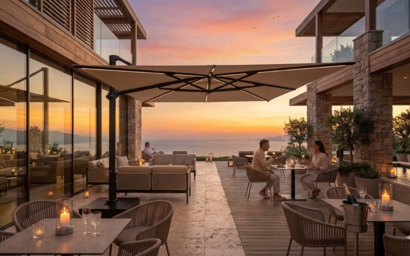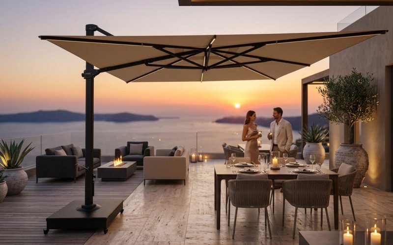 På terrassen eller i haven skal udelivet føles ubesværet og komfortabelt. Skarp sol eller en pludselig regnbyge kan hurtigt forstyrre den oplevelse. Med Nero LED bevarer du kontrollen. Denne elegante hængeparasol giver generøs skygge i dagtimerne og skaber en varm og indbydende stemning om aftenen takket være den diskret integrerede LED-belysning. Dit uderum forvandles naturligt fra et lyst dagmiljø til et stilfuldt opholdssted længe efter solnedgang.