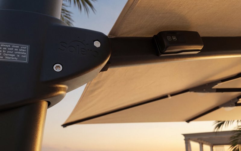 Nero LED er skabt til langvarig brug. Den stærke aluminiumsramme er korrosionsbestandig og afsluttet med en slidstærk, mat sort pulverlakering. Den højkvalitets Solero O’Bravia dug er kendt for sin fremragende farveægthed og høje UV-beskyttelse. Dugen er desuden vandafvisende og smudsresistent, så parasollen bevarer sit eksklusive udseende sæson efter sæson.
